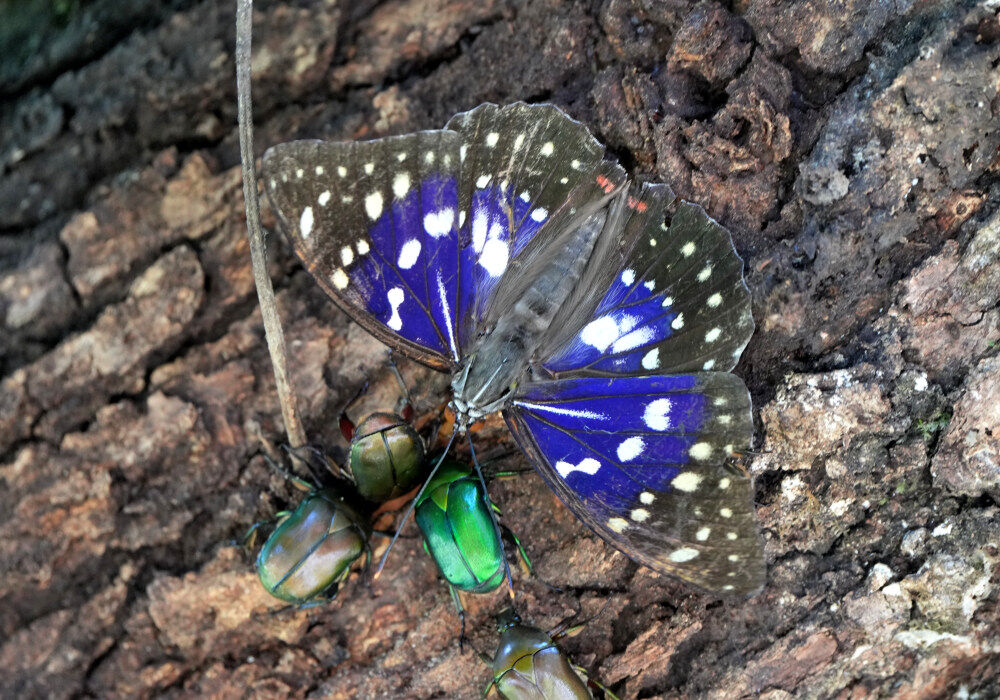 連日、樹液にたくさんの昆虫が集まっています。