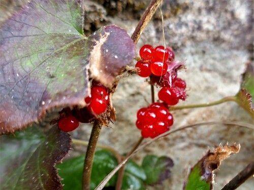 フユイチゴ:冬に実が熟す。例年今の時期はツララの中なんですが