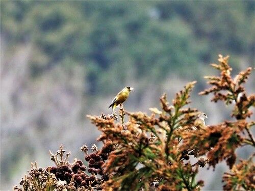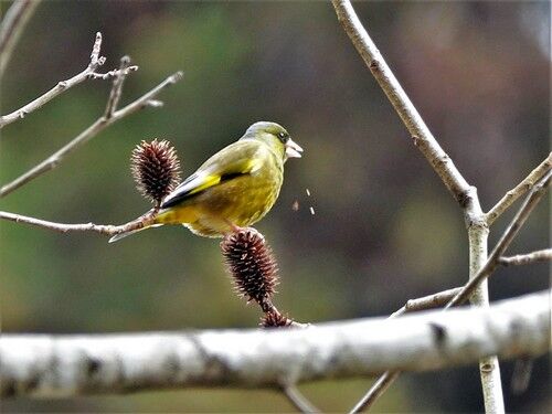 カワラヒワ:ノグルミの種を食事中