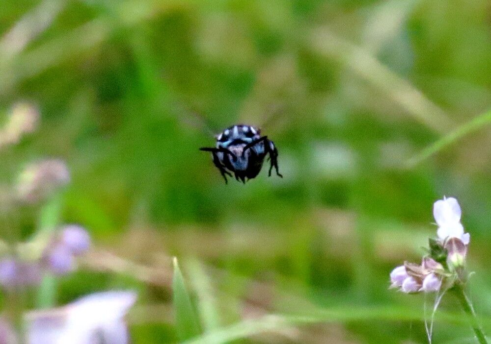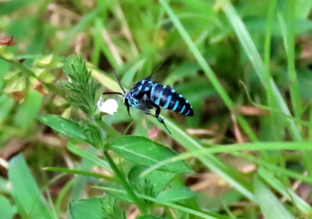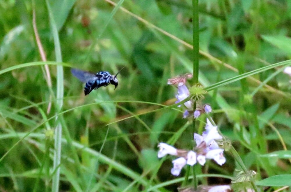 2020年08月15日 残暑お見舞い申し上げます 暑いですね暑すぎます。が、この季節、このブログをご覧の方ならご存知の、幸せを運ぶといわれるあの昆虫がアキノタムラソウにきてます。ルリモンハナバチきてます。新型コロナ対策はもちろんのこと、熱中症対策も万全にお越しください。公園には自動販売機はございませんので水分は充分にお持ちください。