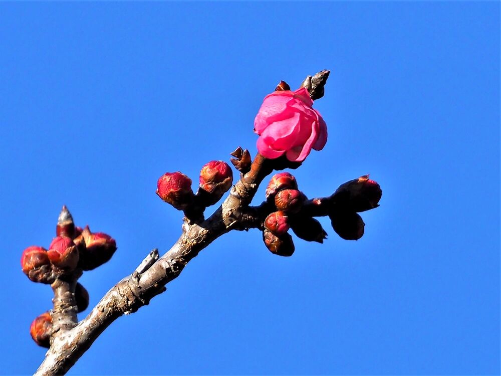 市内より2~3度気温が低い為、梅がやっと蕾が膨らんできました。