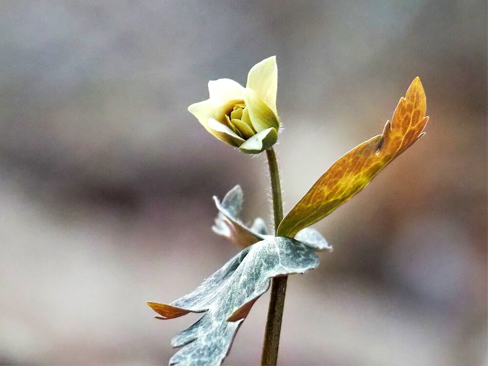 ユキワリイチゲ:例年より一か月近く遅れています。そろそろの状態