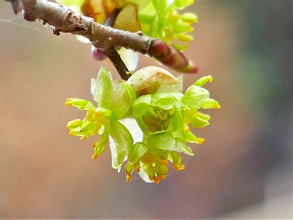 数多く咲いているのが雄花で、一番下の小さな双葉の様なものが雌花