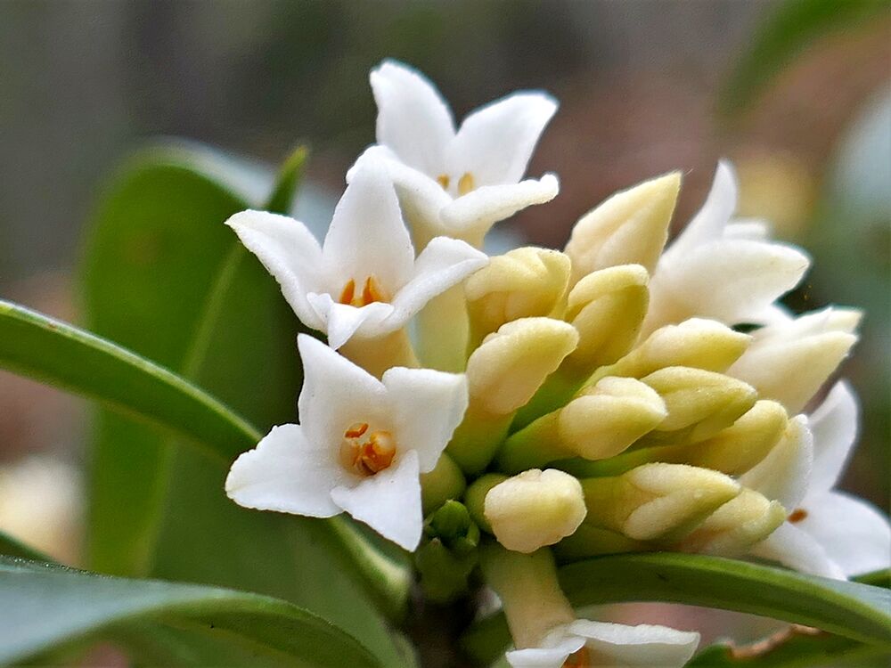 臭いはガスの様なにおい。花は白が多いですが、ピンクもたまにあります