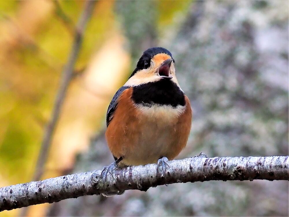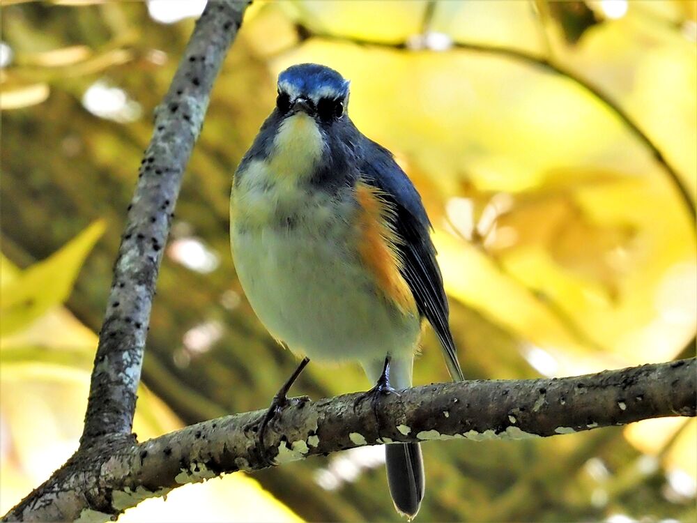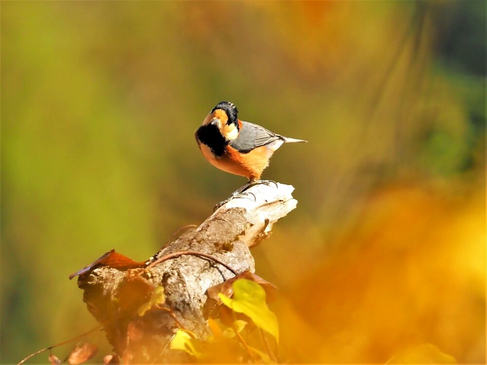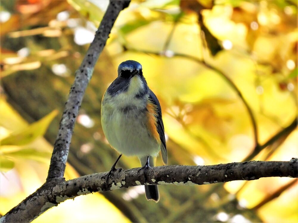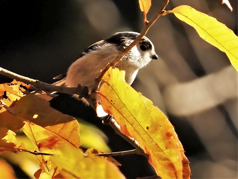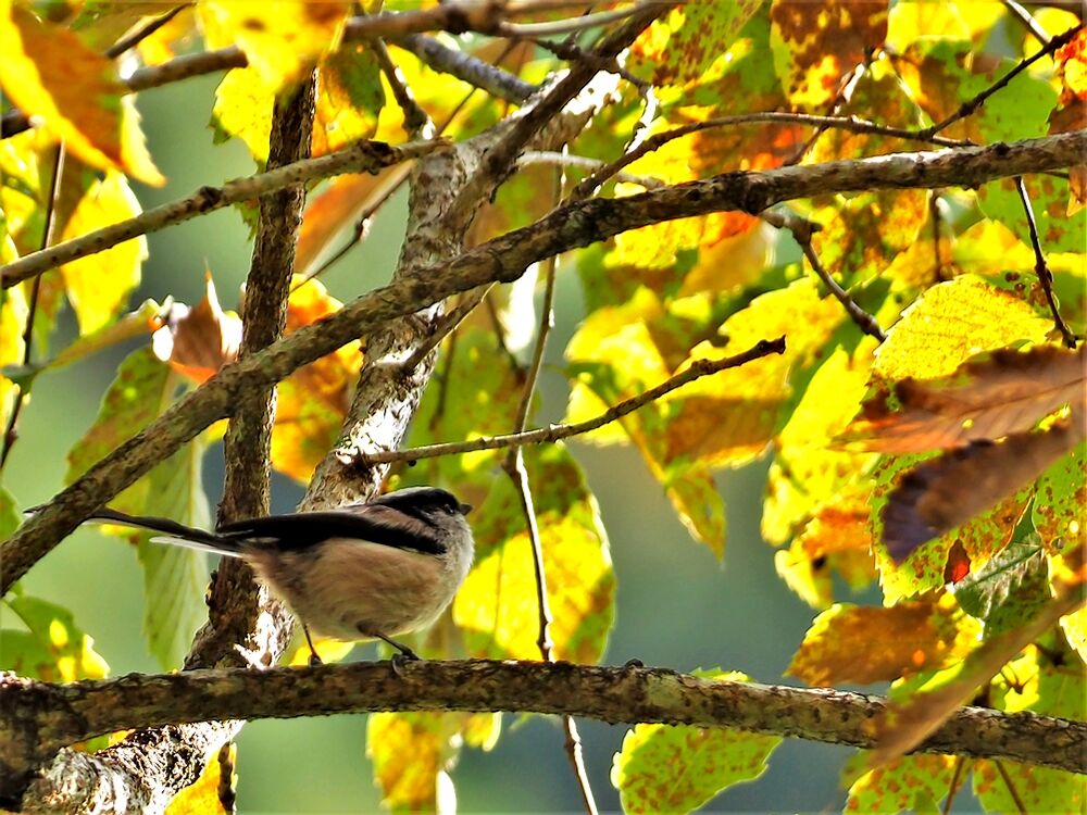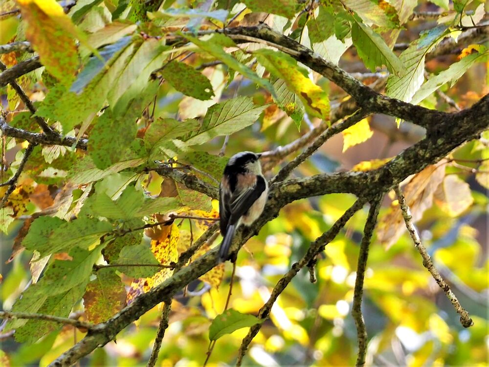 ヤマガラ:様子を見に来たような雰囲気でした、黄色い葉っぱのすきまから