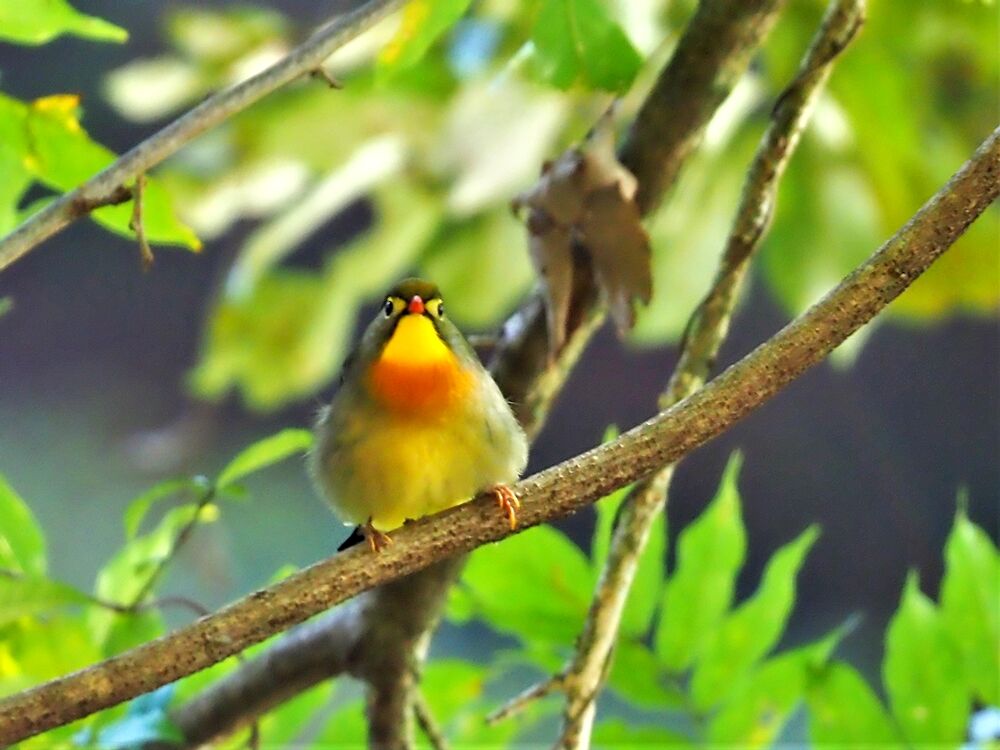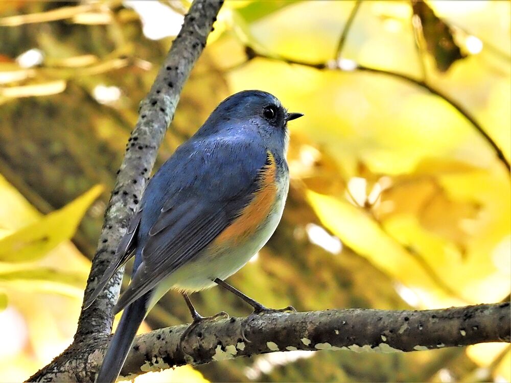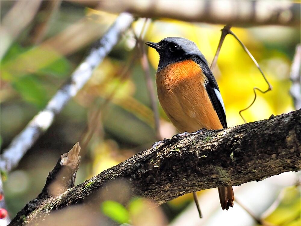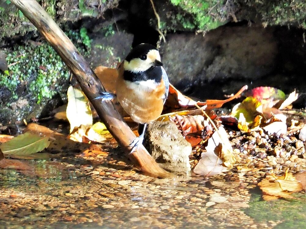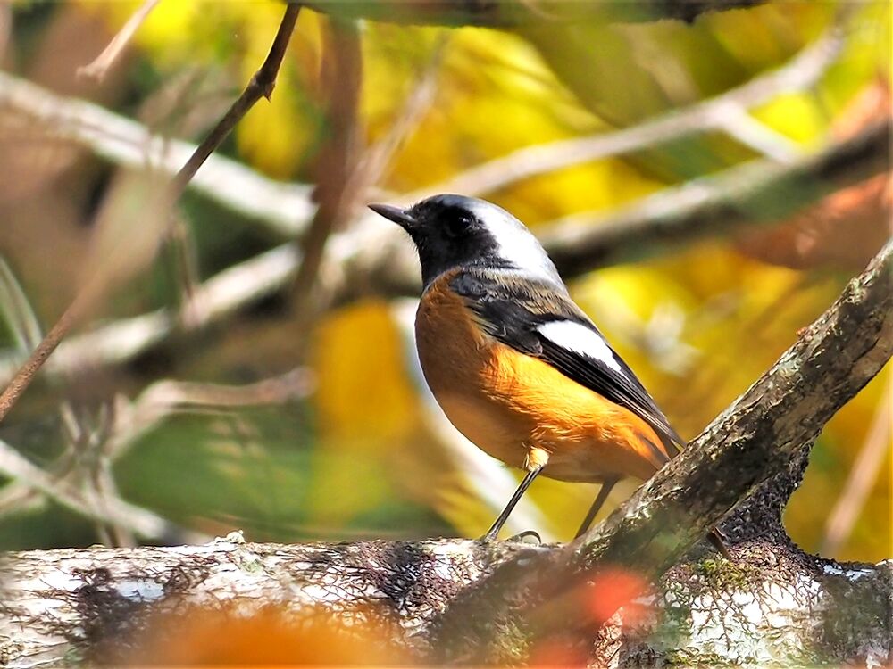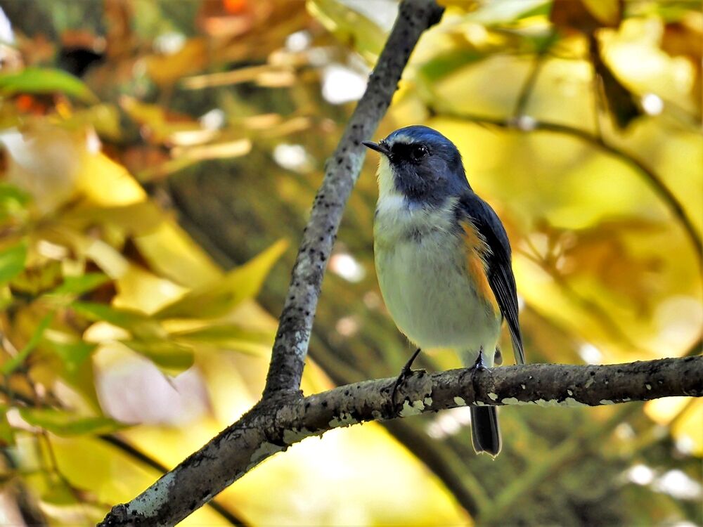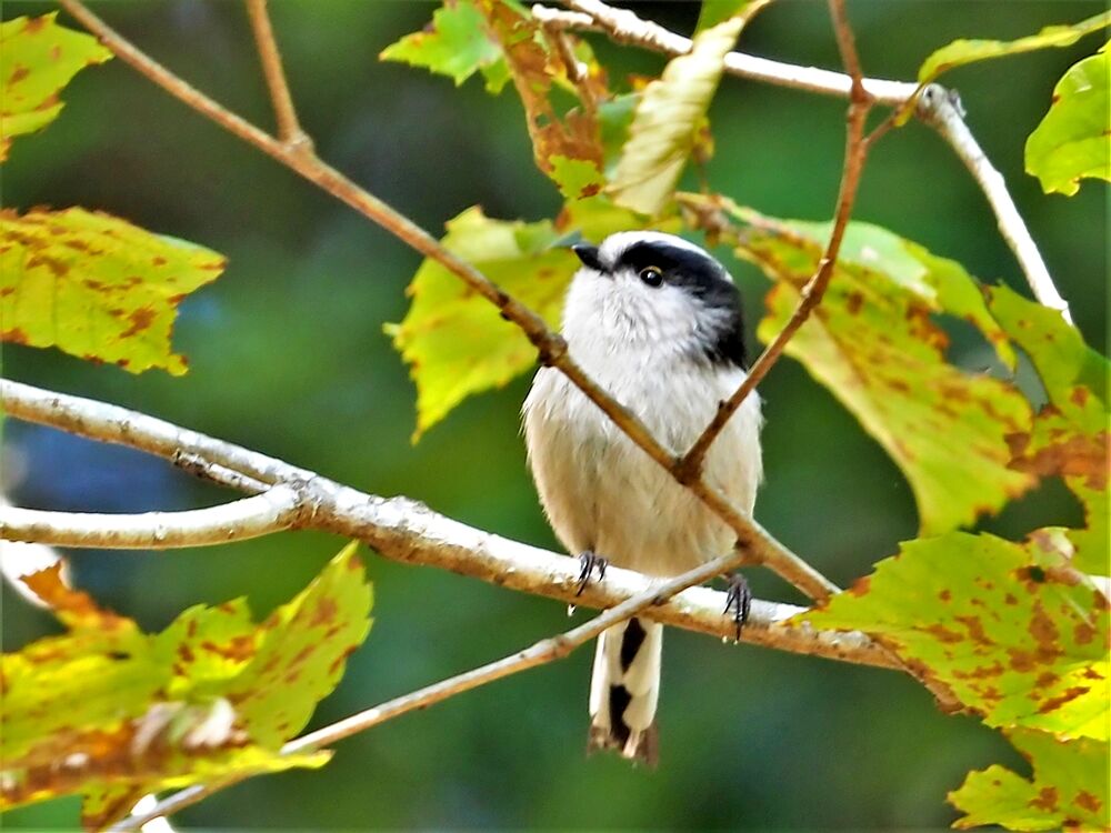 ヤマガラ:様子を見に来たような雰囲気でした、黄色い葉っぱのすきまから