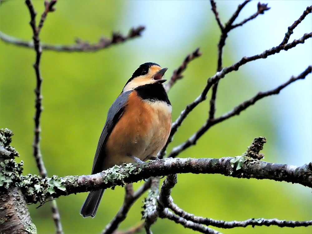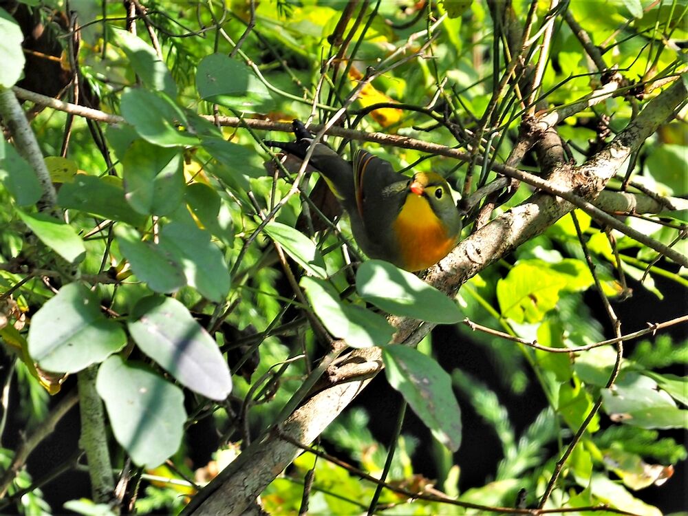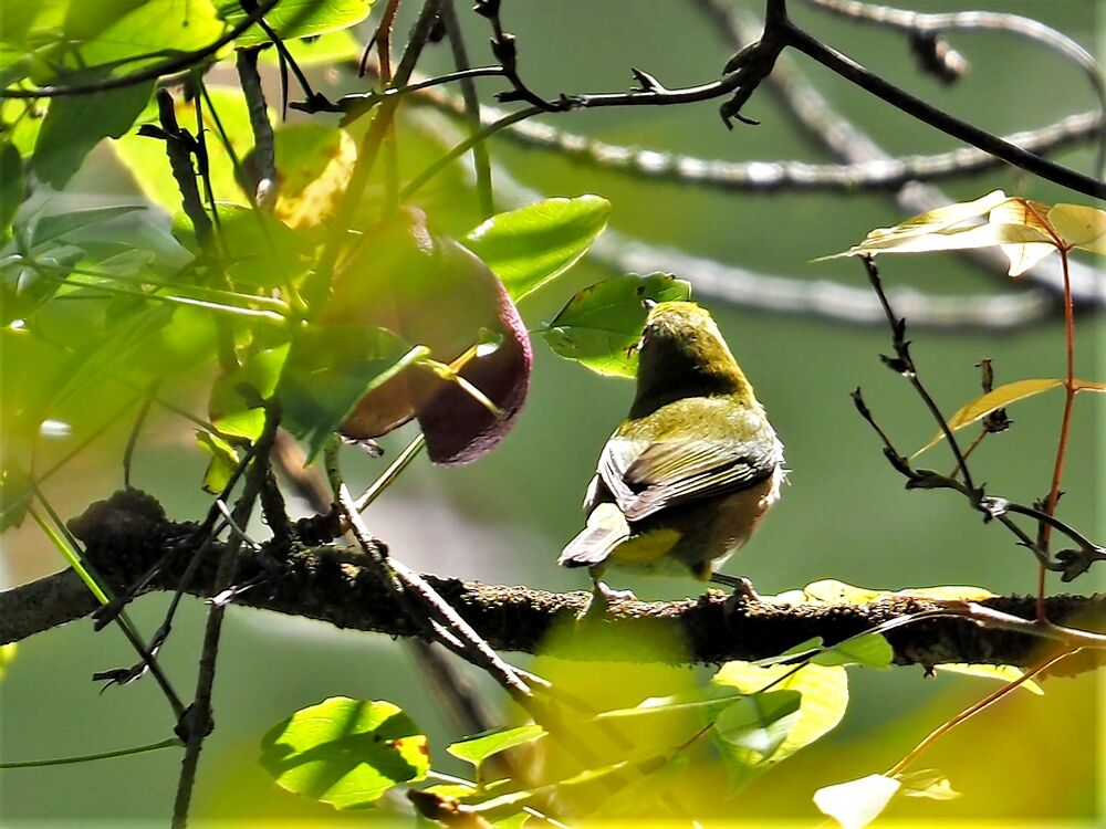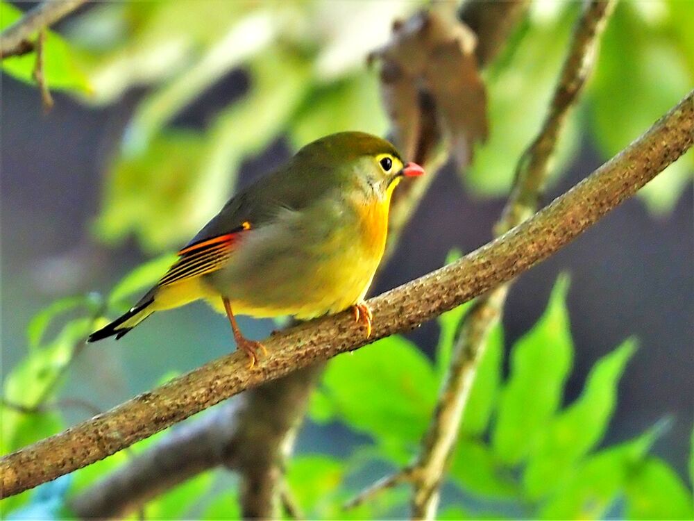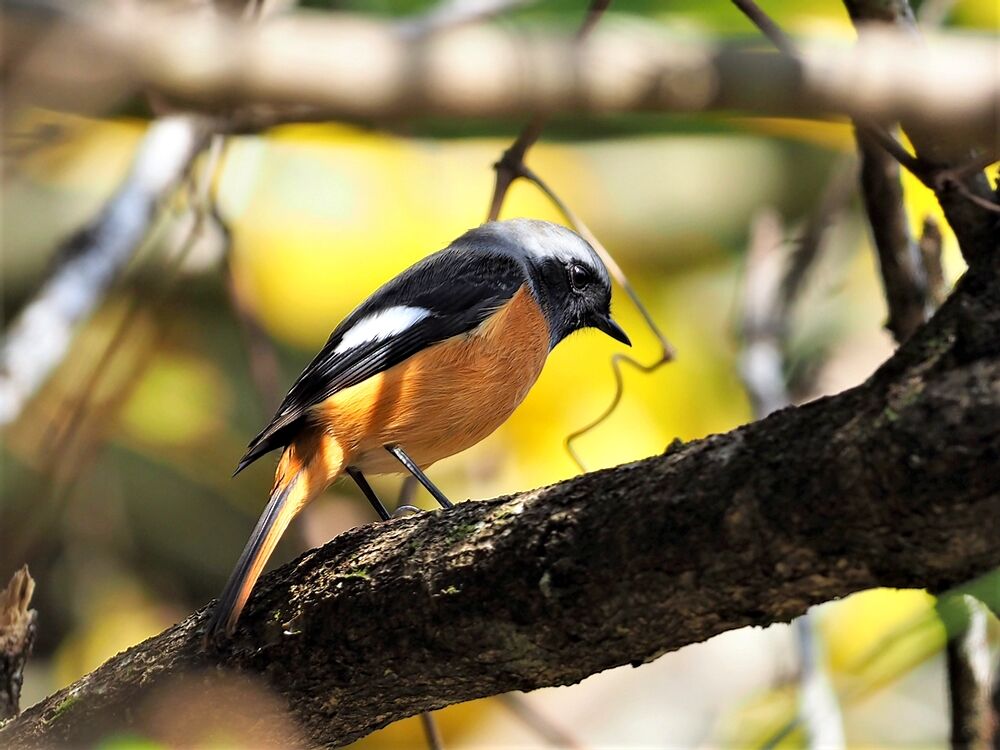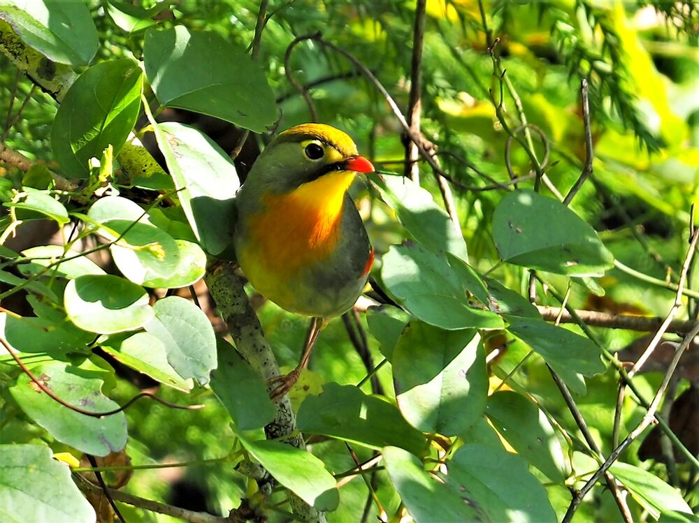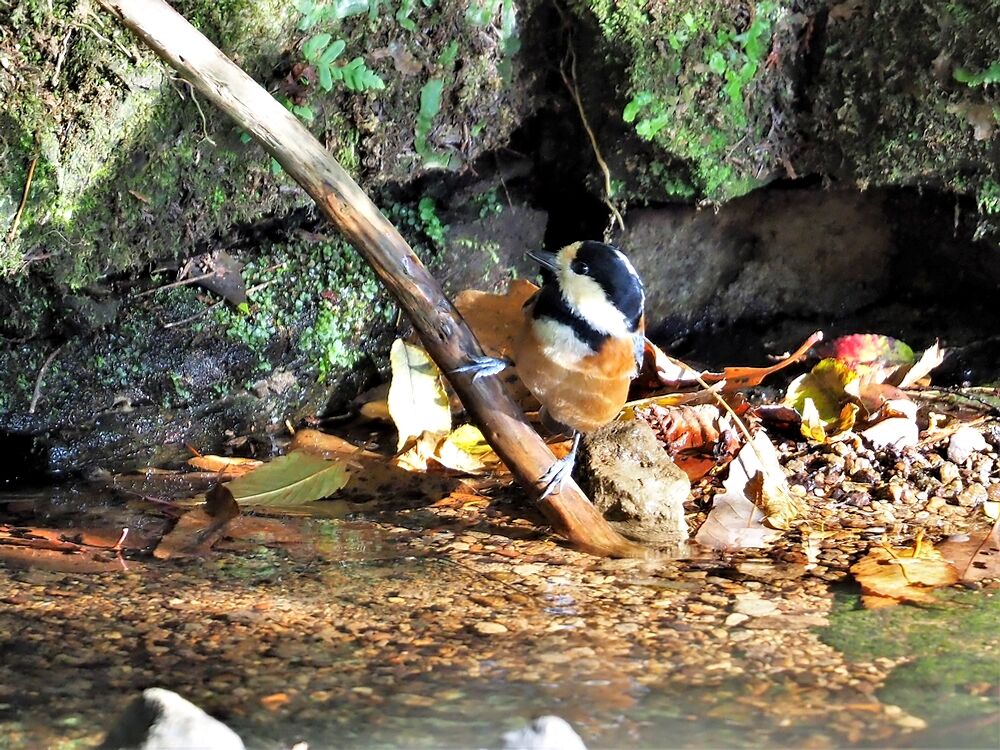 ヤマガラ:様子を見に来たような雰囲気でした、黄色い葉っぱのすきまから