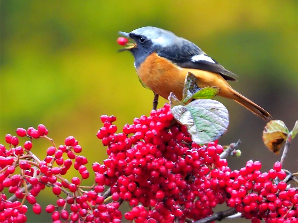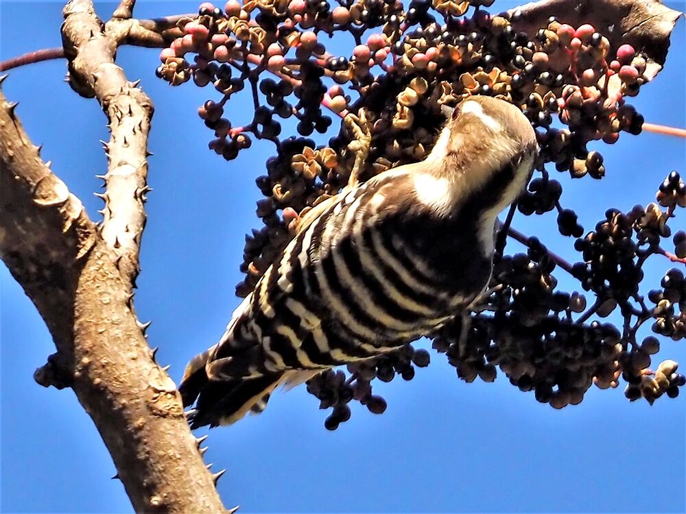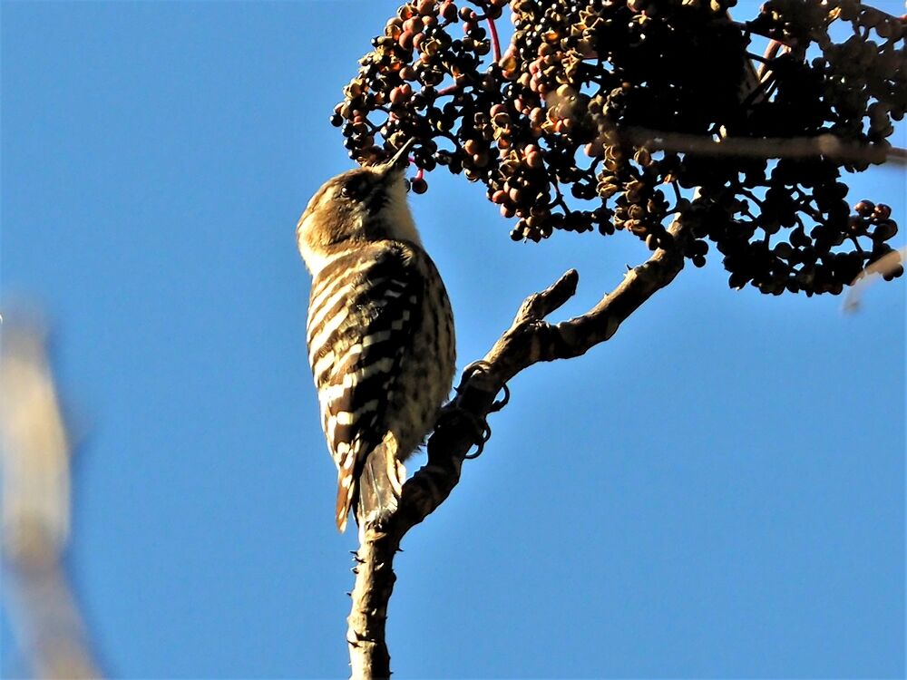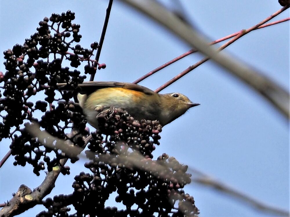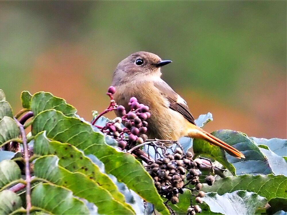 ジョウビタキ♀:こちらもカラスザンショウ(別の木)