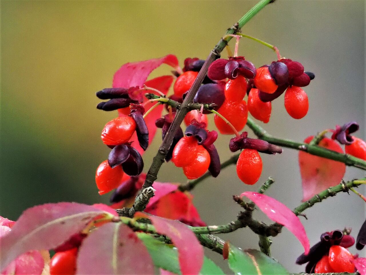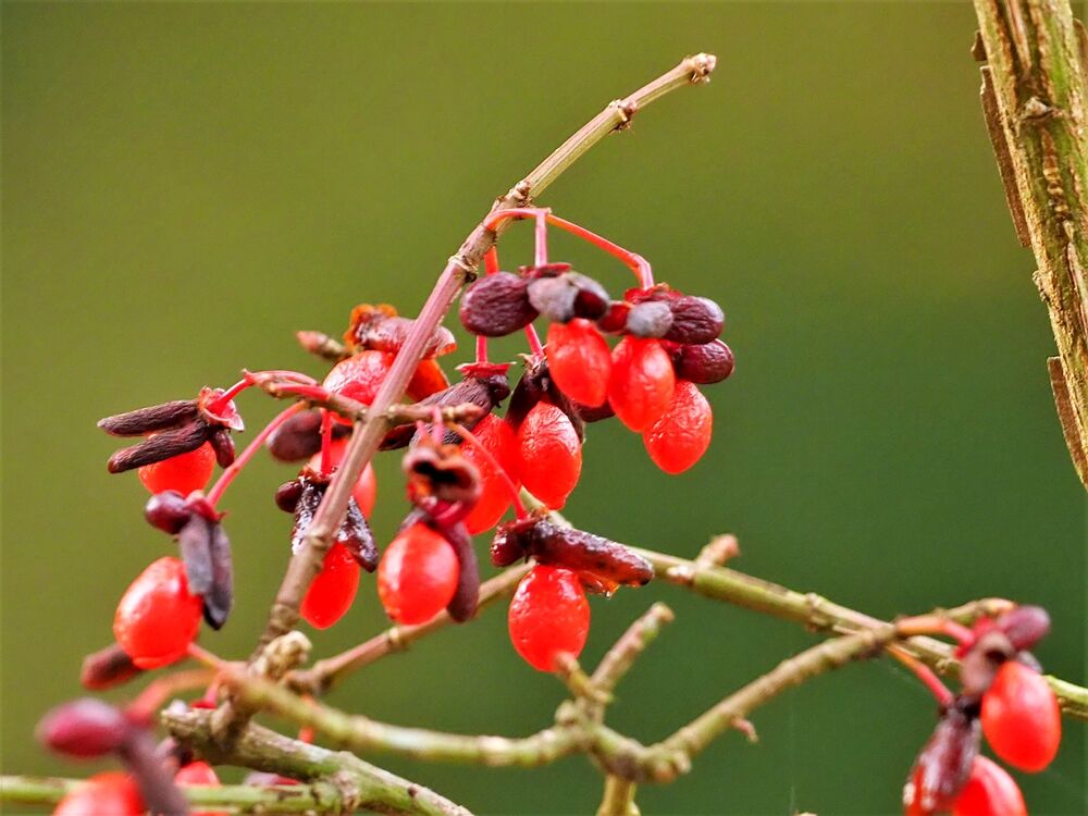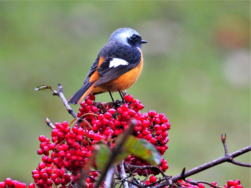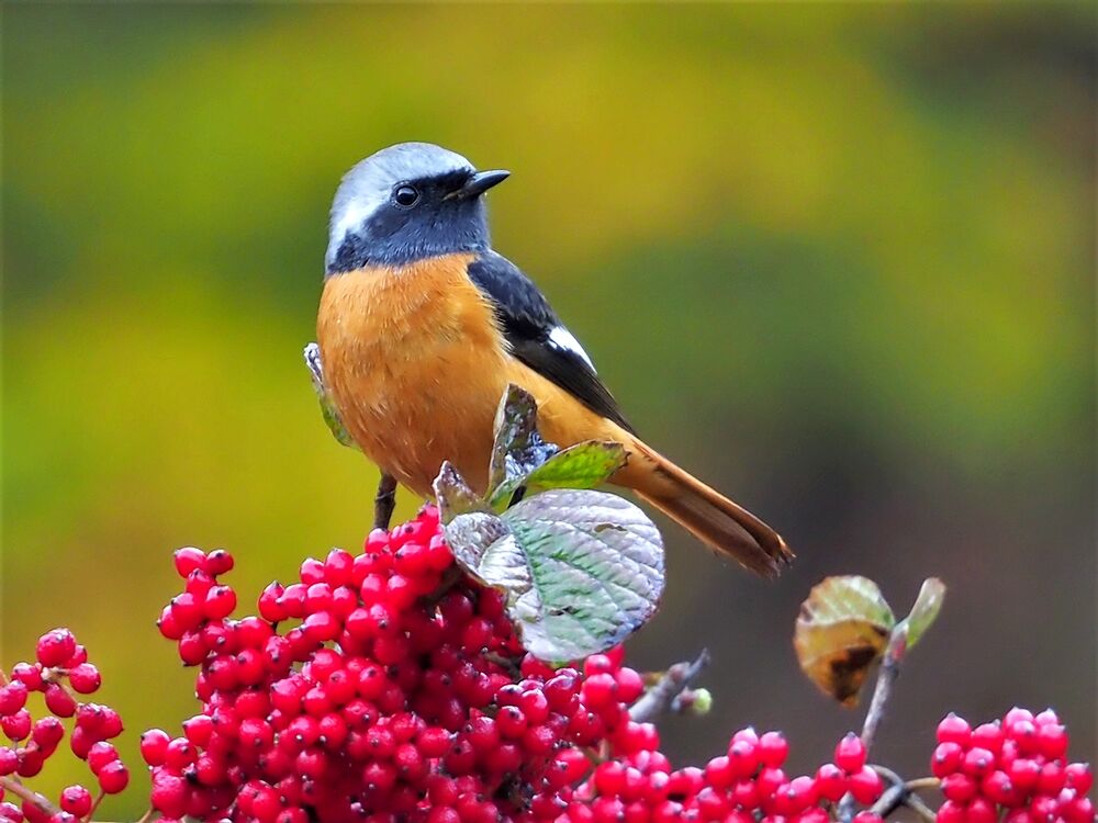 ジョウビタキ♀:こちらもカラスザンショウ(別の木)
