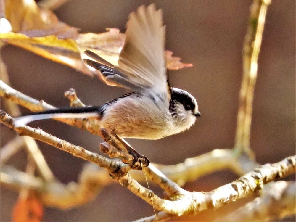 エナガ:20羽程度の群れで食事中、大忙しでした
