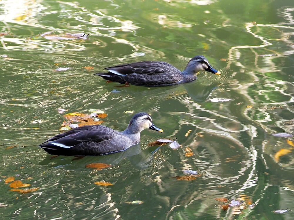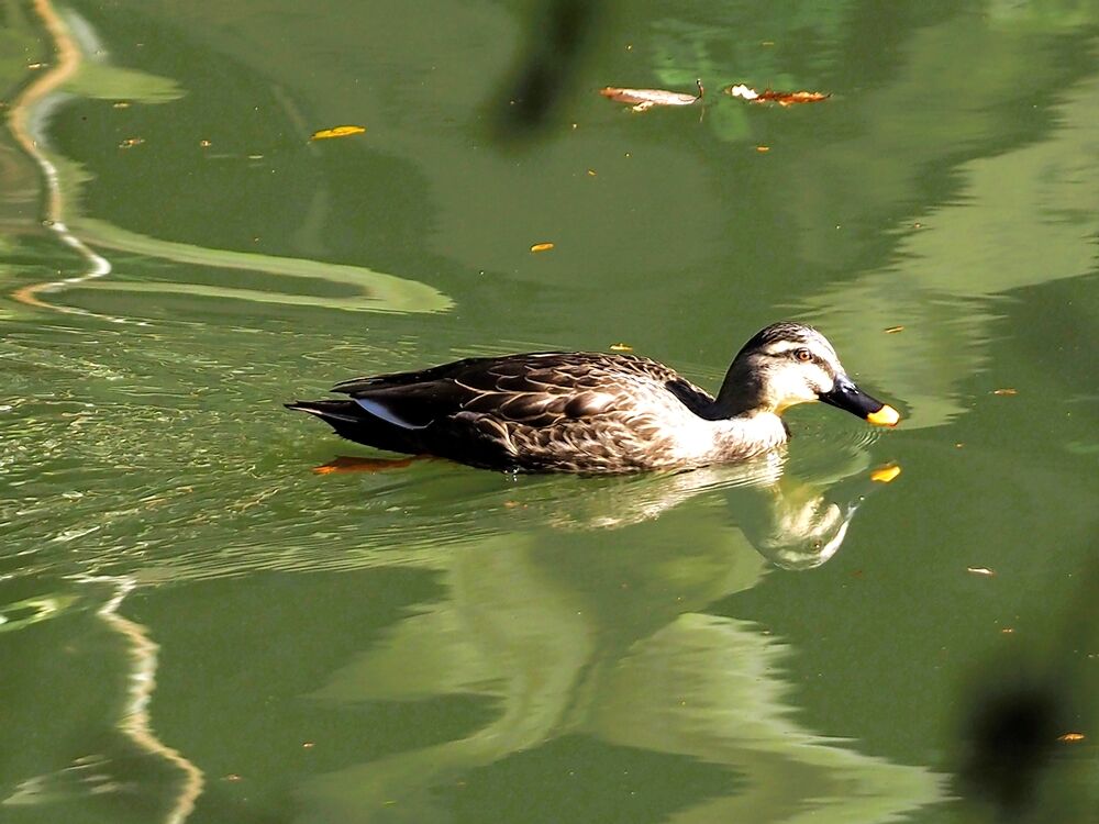 カルガモ:通宝寺池で最近よく見かけます