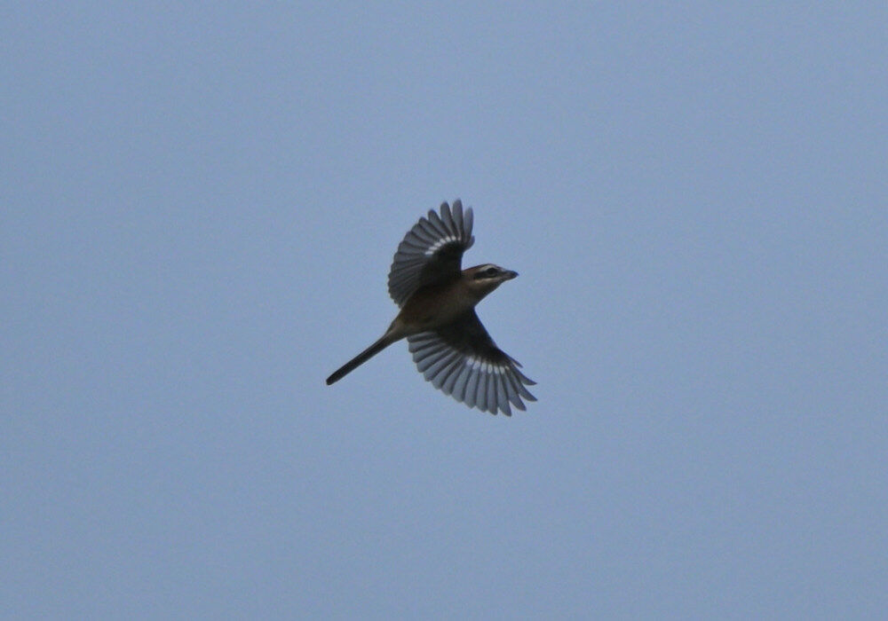 背の高いヒノキにとまり、高鳴きする様子が見られます。